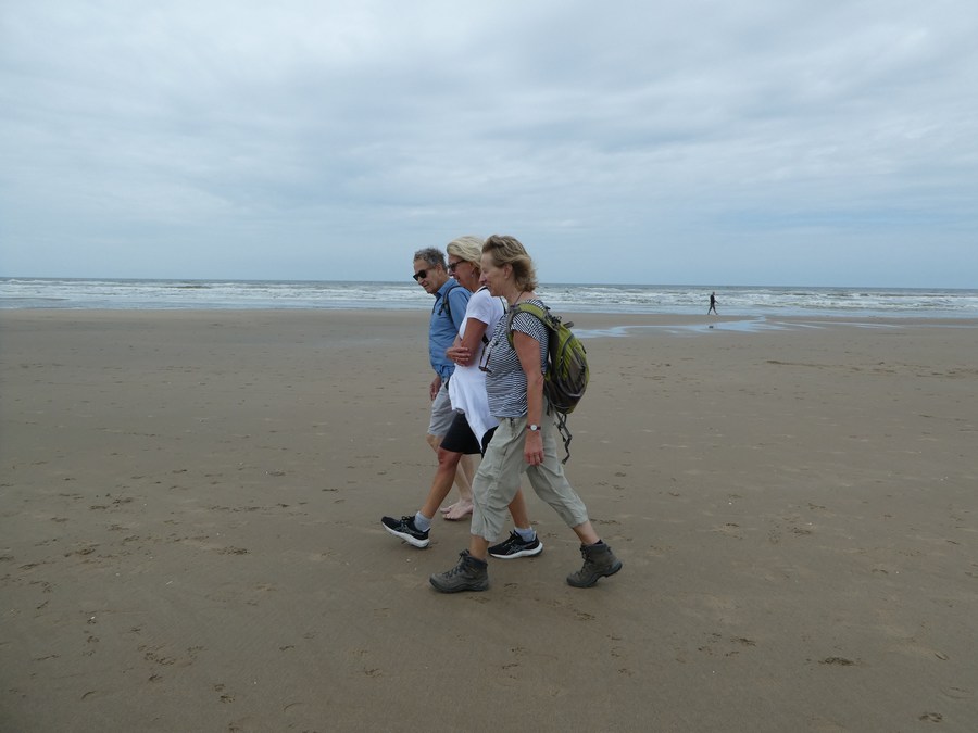 Na een aantal hele warme dagen was het zaterdag 28 juni 2025 eigenlijk heel aangenaam weer om te wandelen. En zo togen we met z’n vieren al om 9.56 uur met de trein naar Santpoort Noord.