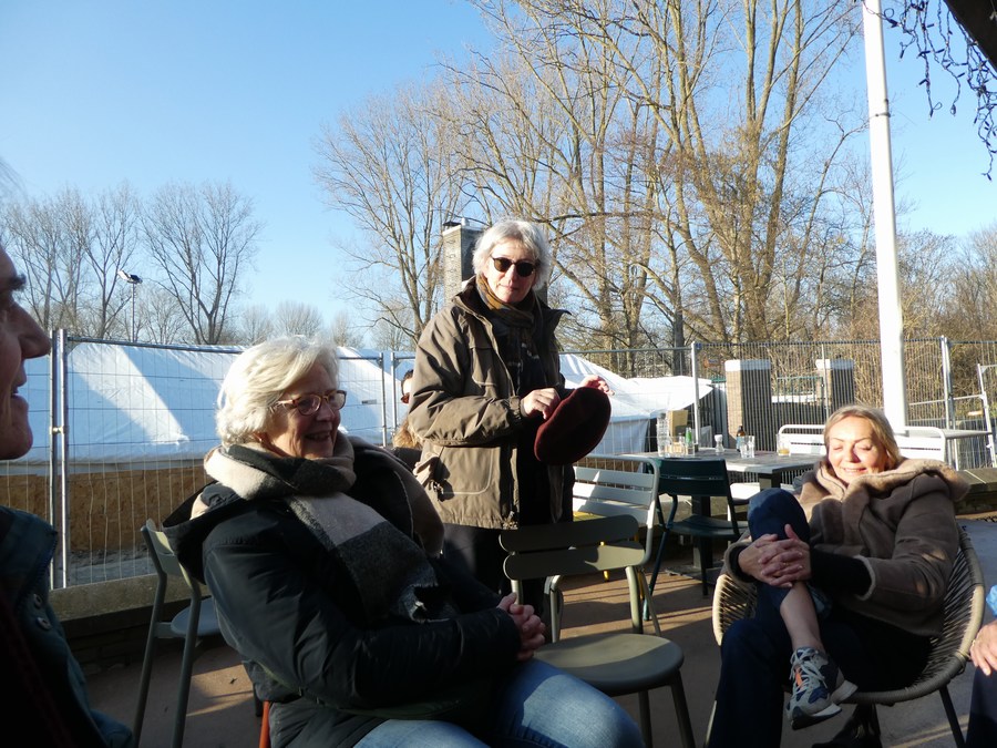 Omdat we zo genoten van het Amsterdamse Bos, gingen we nog een drankje drinken op het terras van De Bosbaan. Heerlijk in het zonnetje; het leek wel lente! De bus bracht ons terug naar de stad, waar we met een voldaan gevoel aankwamen bij de Appeltjesmarkt.